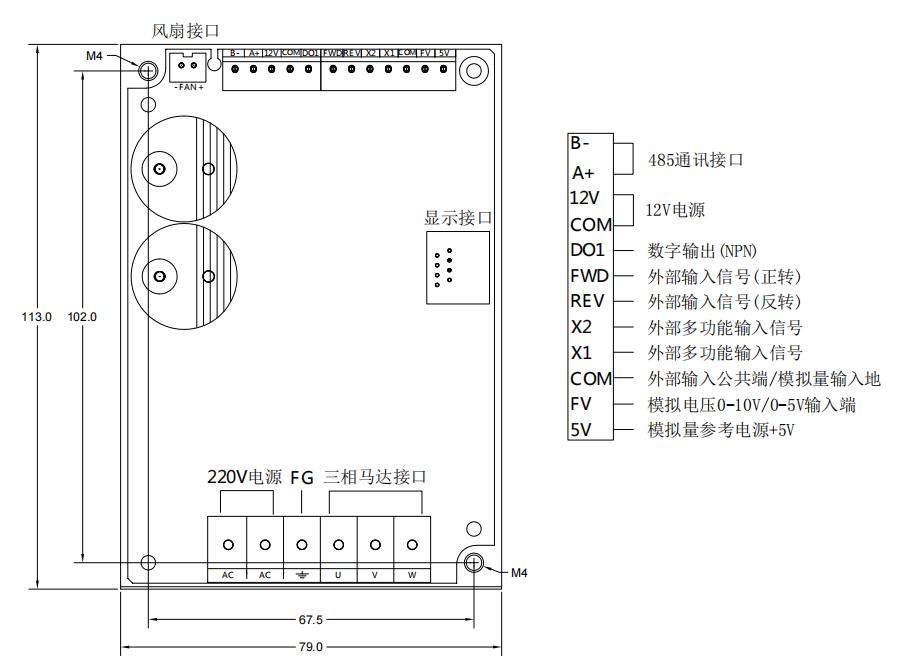 4.  五位數(shù)碼管顯示,五個狀態(tài)指示燈(顯求頻率、電壓、轉(zhuǎn)速、正反轉(zhuǎn)狀態(tài)、故障等);